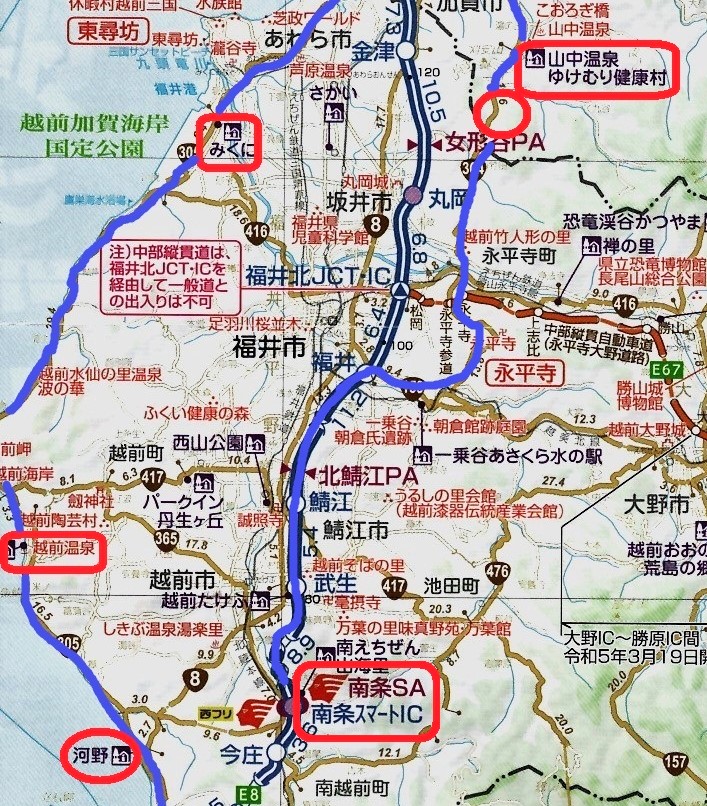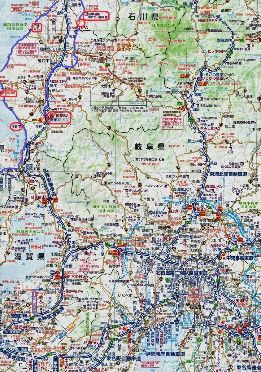 今回は、石川県加賀市にある「栢野の大杉」周辺の散策を終え、北陸自動車道へ乗りました。福井県に入り南条郡南越前町の「南条サービスエリア(下り線)」で、小休憩しました。