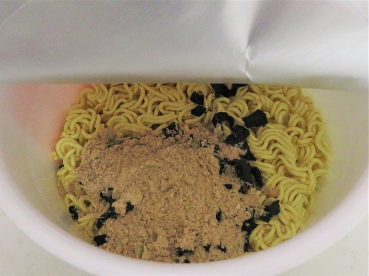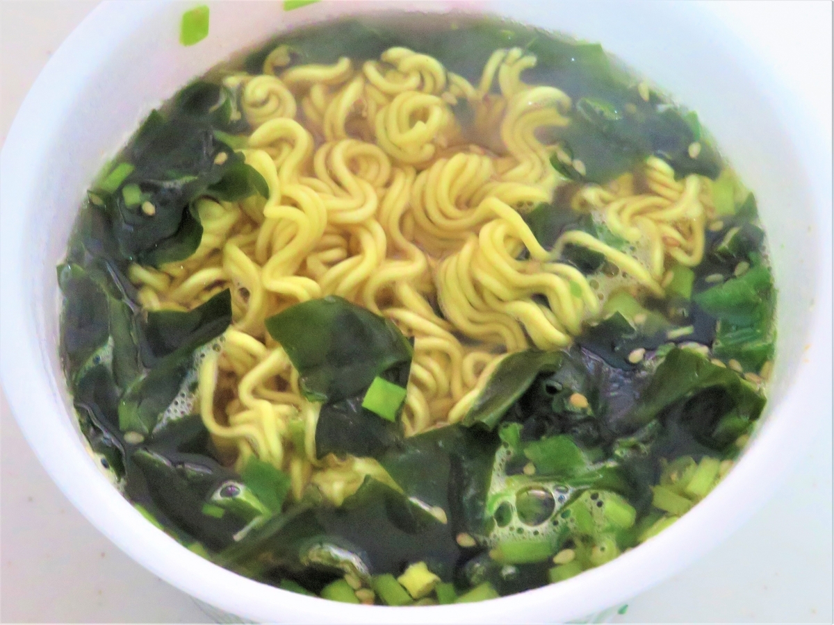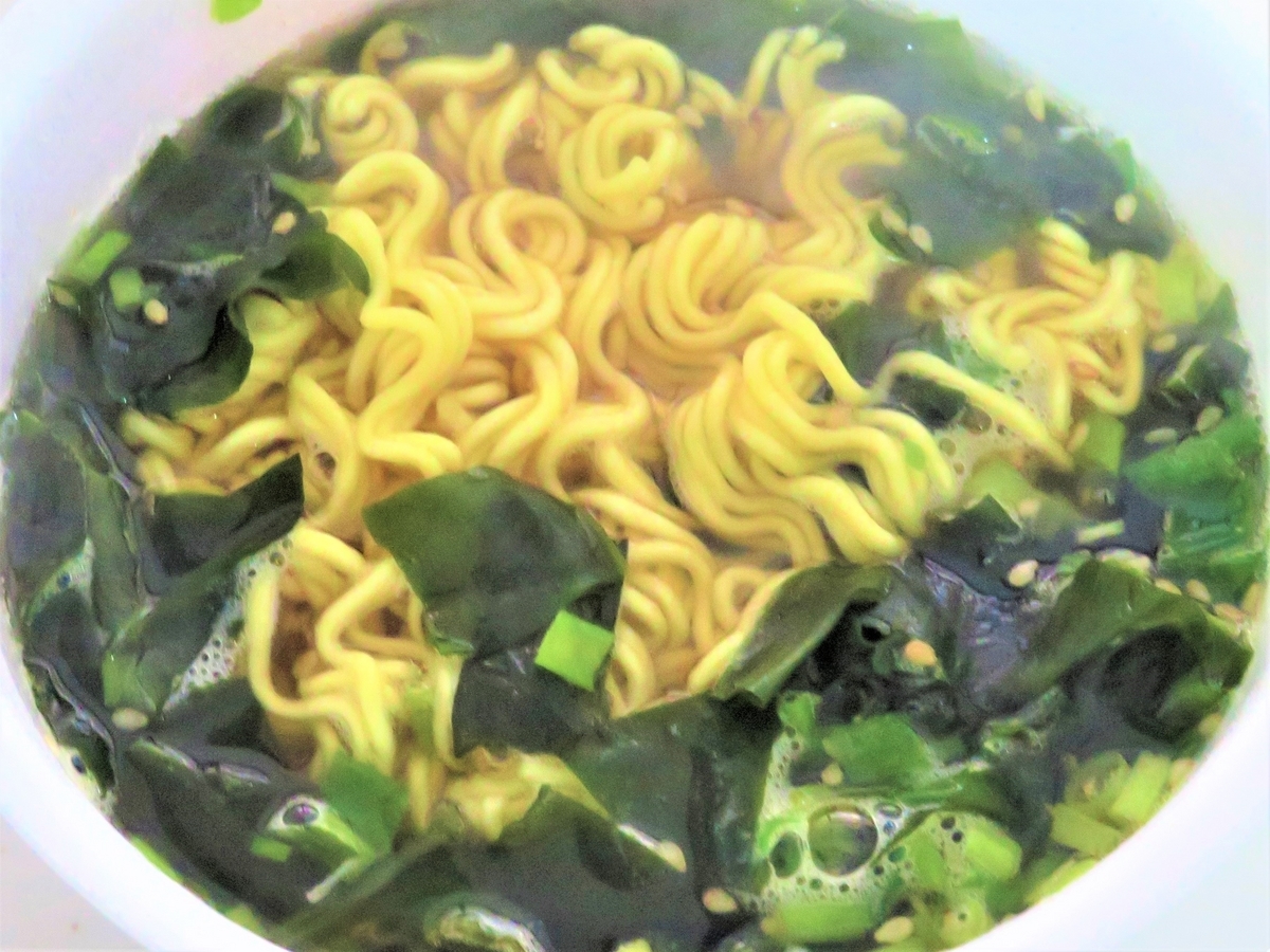 車から持ち出して自宅で食べました。マルちゃんの「わかめラーメン醤油味」です。
