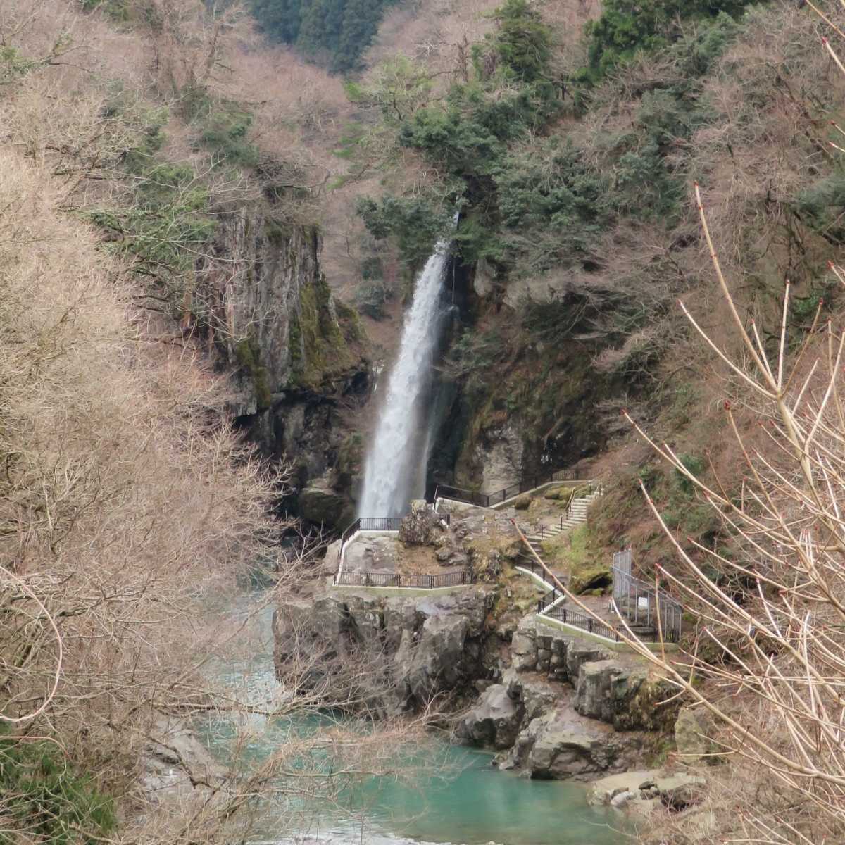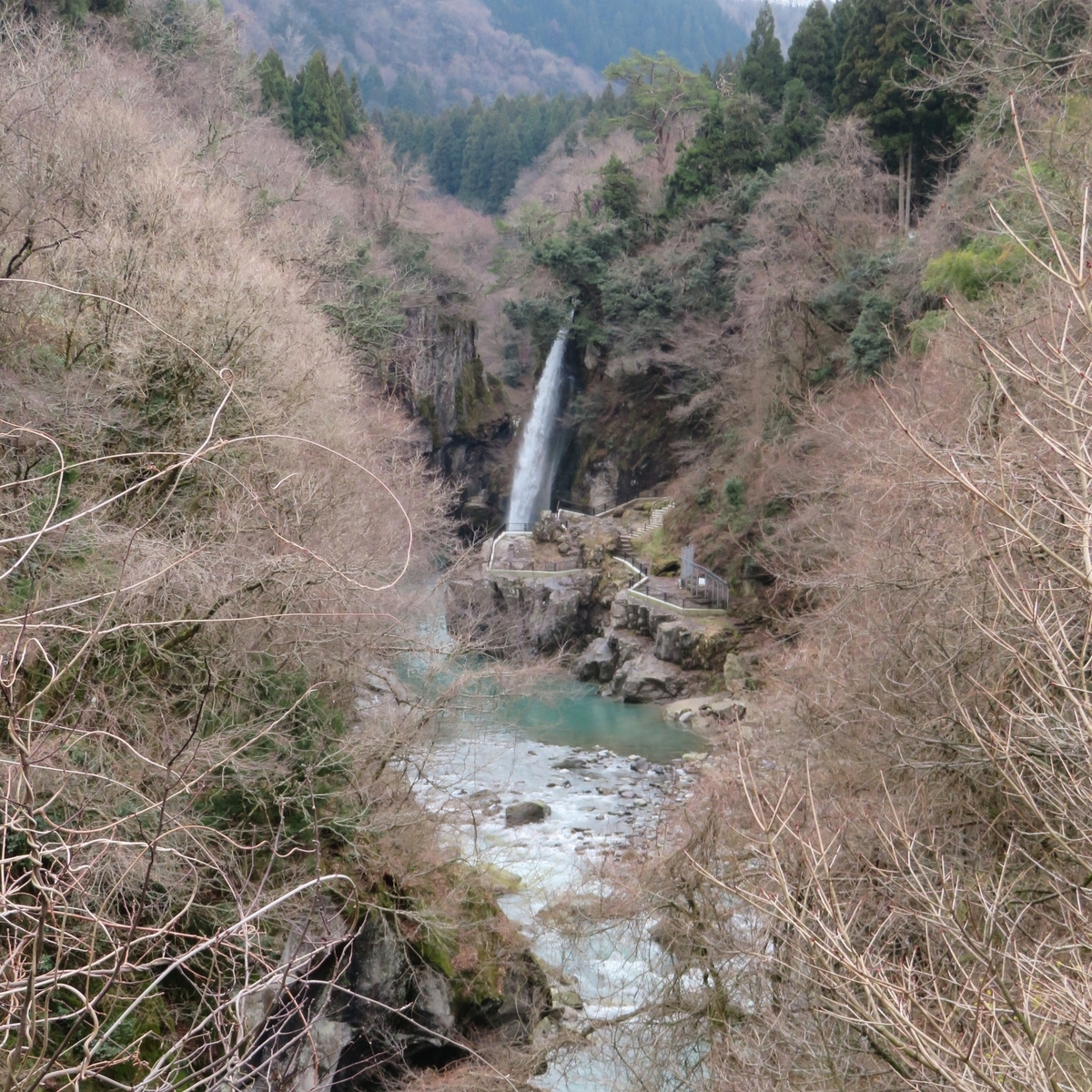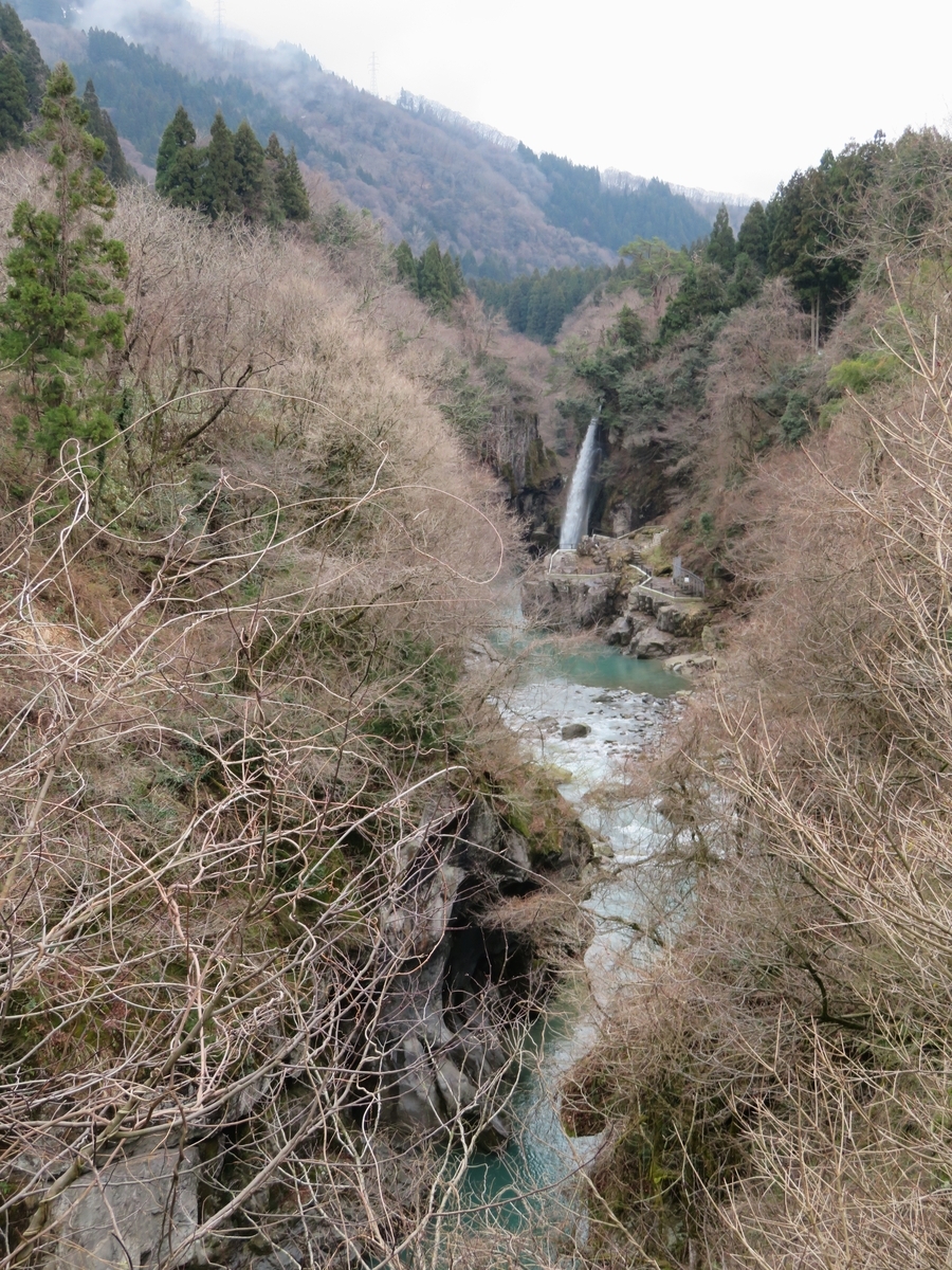 石川県白山市にある「錦ヶ滝」へ、やってきて遊歩道からパチリしているところです。 3回目の掲載になります。ここは「手取峡谷」でもあります。